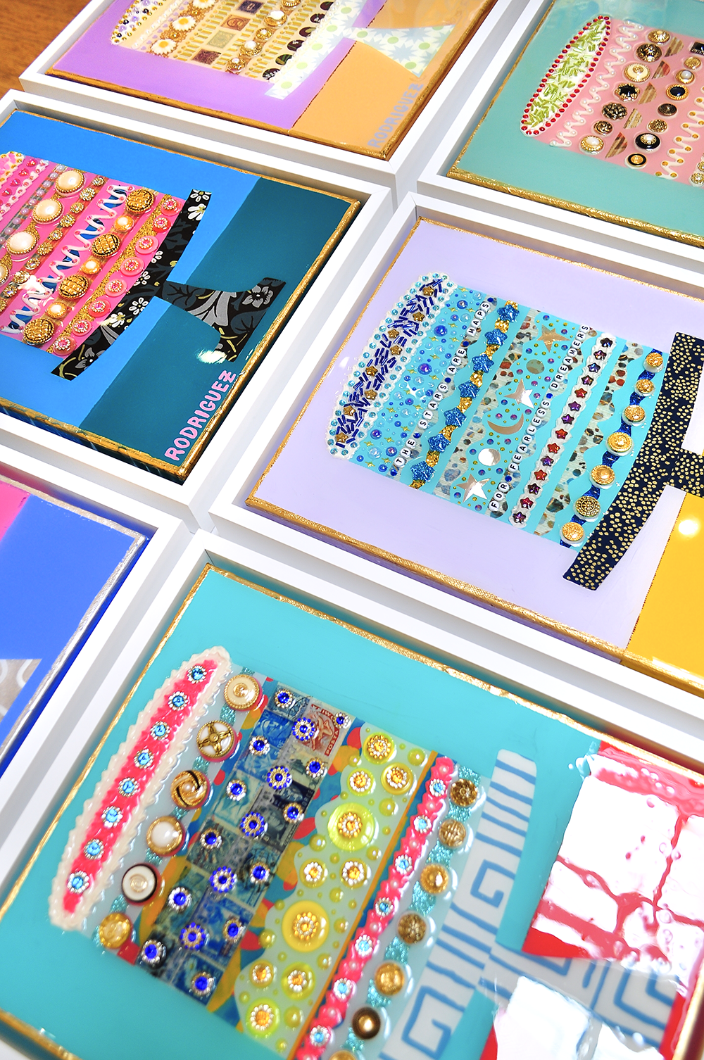 Crafted one layer at a time, each element holds a secret — a memory of wonder, a prayer for joy. Vintage buttons recall how we adorn ourselves for special occasions. Old stamps speak to our longing to stay connected across distance. Glass beads, rhinestones, sprinkles, and other curios shimmer in homage to life’s pure revelry.