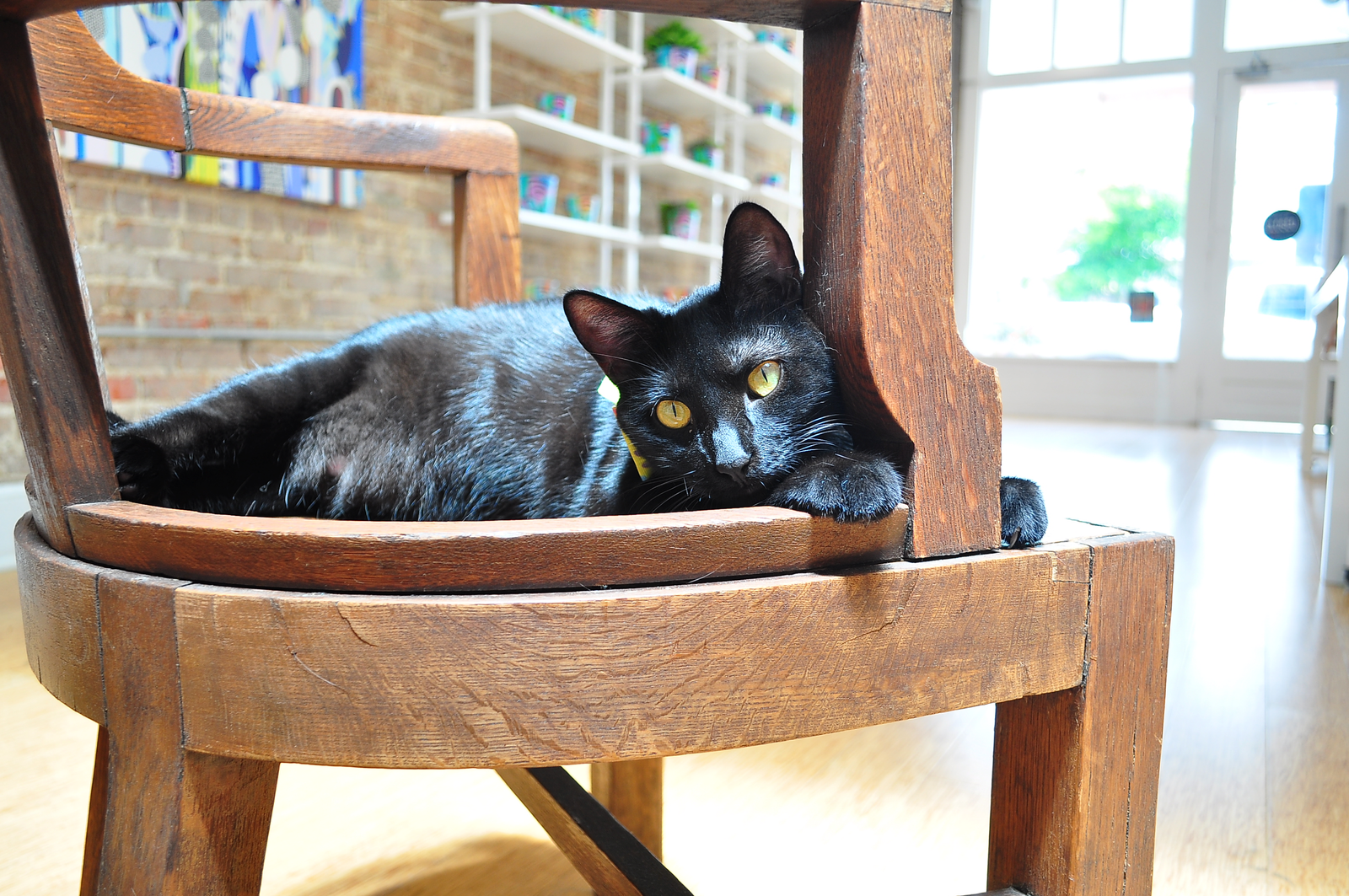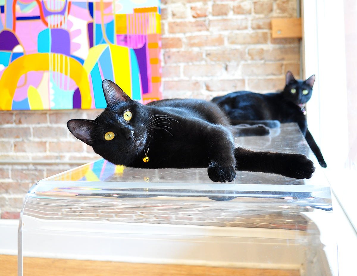 As you wander through the gallery, you’ll likely see Pigment gracefully rollover for a belly rub, be mezmorized by Teapot's piercing yellow eyes, and have Graffiti melt your heart with his playful antics.